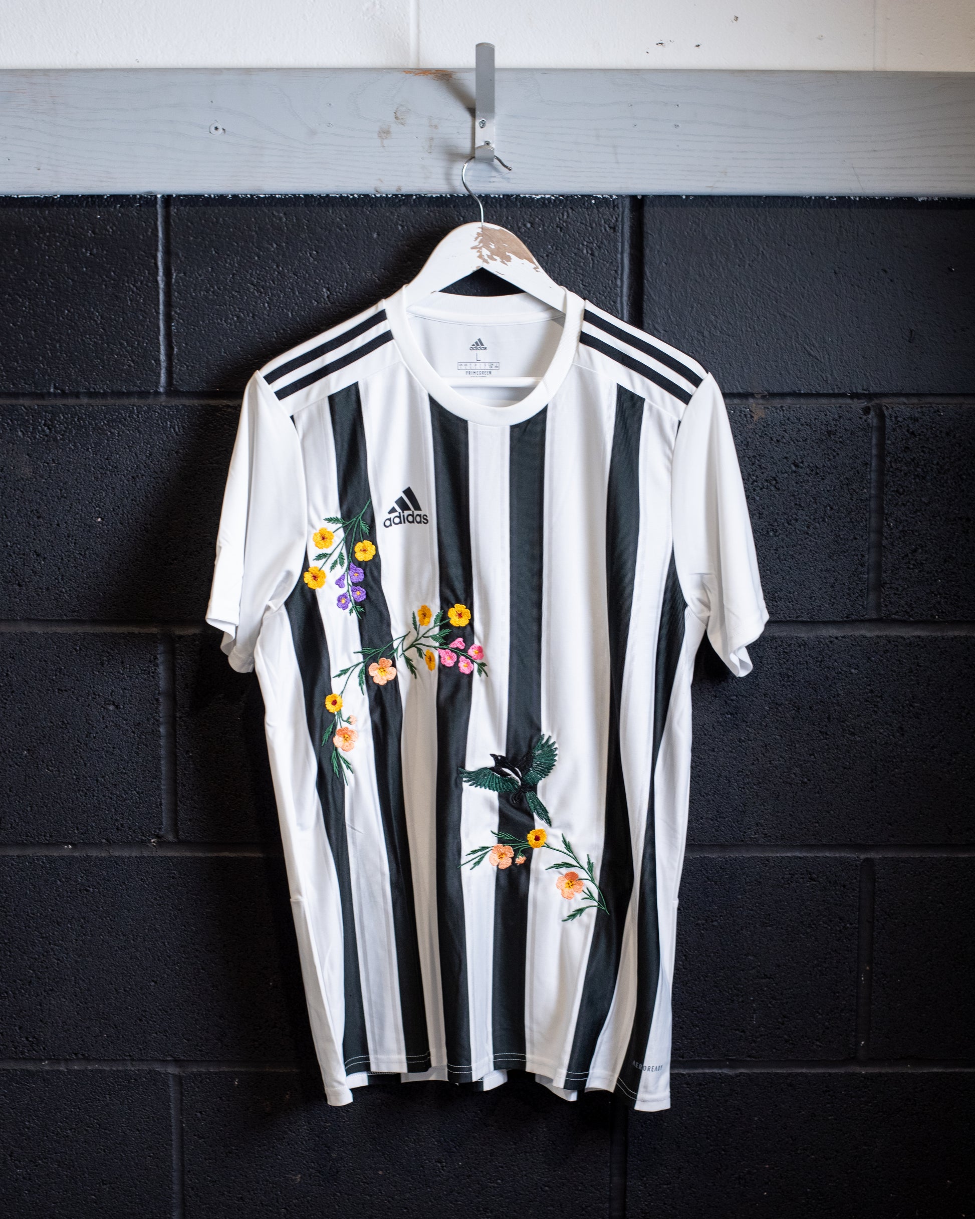 - Upcycled Adidas base shirt